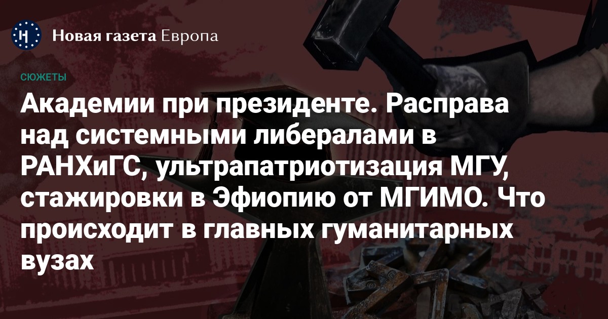 В атмосфере, где студентам журфаков предлагается выбирать направление для практики среди нескольких государственных агентств, где приоритетным местом работы для молодых политологов оказывается подразделение Роскомнадзора, где преподавательские составы погрязли в самоцензуре и доносительстве, а из стран для международных стажировок главный дипломатический вуз страны готов предложить Казахстан, Иран и Эфиопию, гуманитарная академическая культура и образование в целом развиваться попросту не могут.