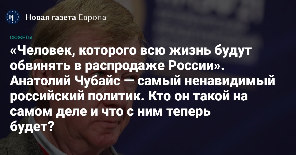«Новая газета Европа» представляет портрет Анатолия Чубайса — человека, который всё еще остается самой неоднозначной фигурой в российской политике.