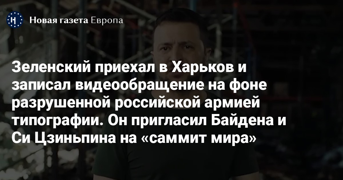 Владимир Зеленский приехал в обстреливаемый российскими войсками Харьков и записал видеообращение на фоне разрушенной от ракетного удара типографии «Фактор-Друк». Оно опубликовано в его личном телеграм-канале.