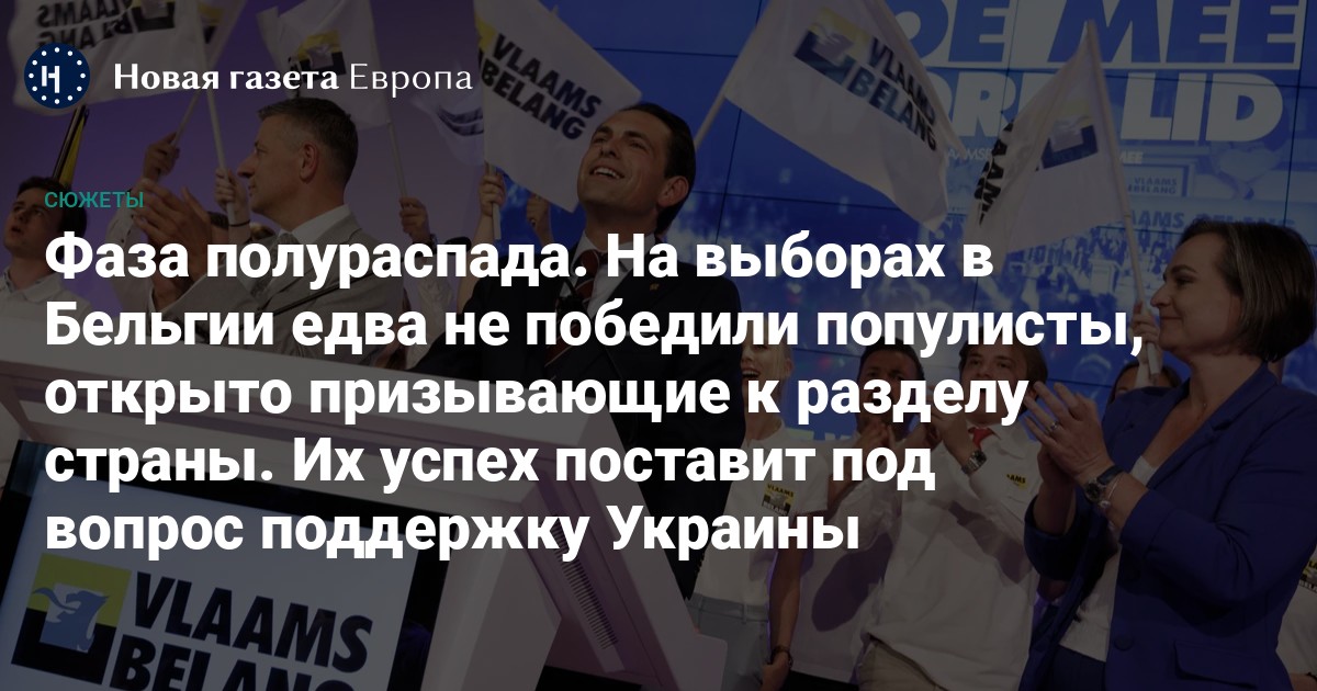 На выборах в Бельгии едва не победили популисты, открыто призывающие к разделу страны. Их успех поставит под вопрос поддержку Украины
