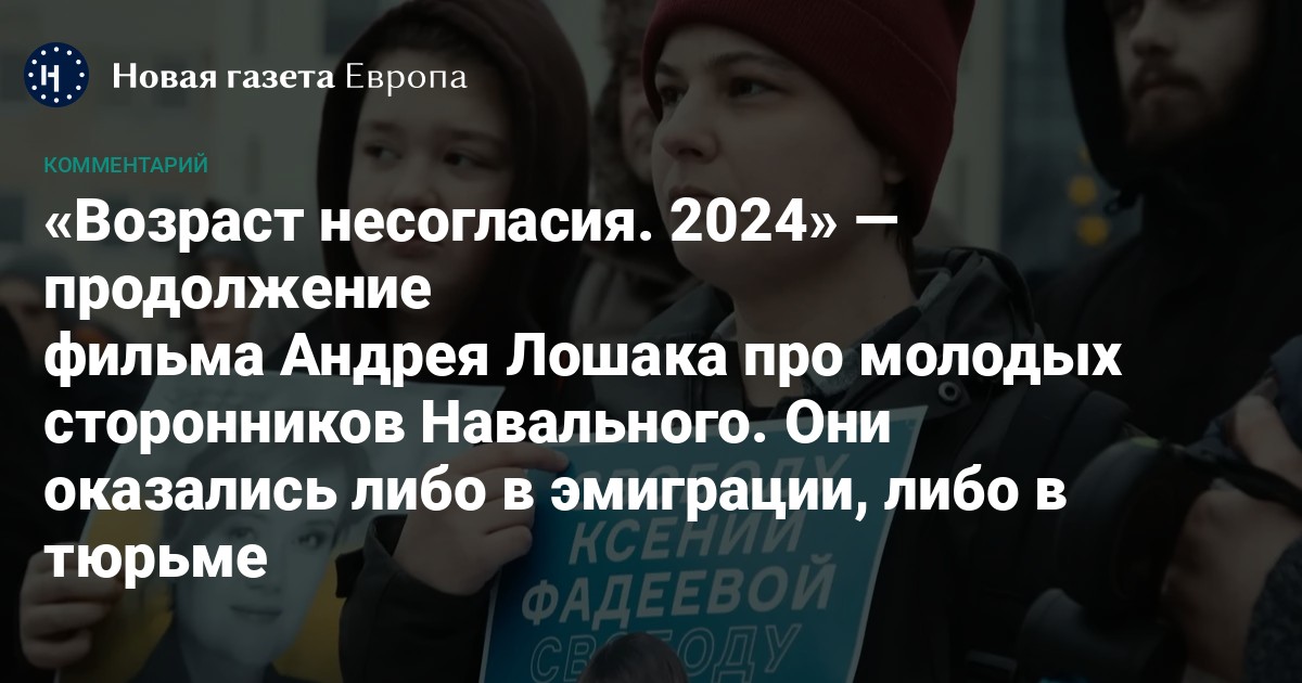 «Возраст несогласия. 2024» — продолжение фильма Андрея Лошака про молодых сторонников Навального. Они оказались либо в эмиграции, либо в тюрьме