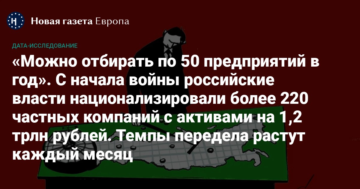 С начала войны российские власти национализировали более 220 частных компаний с активами на 1,2 трлн рублей. Темпы передела растут каждый месяц