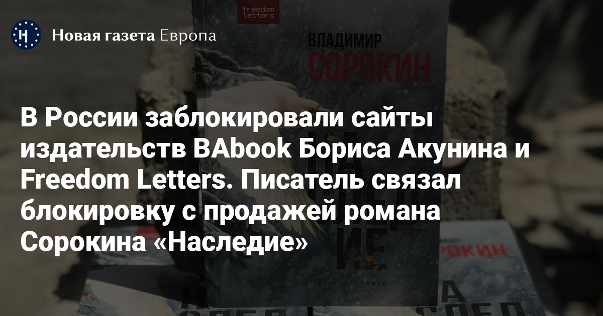 Акунин написал на своей странице в фейсбуке, что блокировка связана с продажей романа Владимира Сорокина «Наследие», в котором экспертный центр при Российском книжном союзе обнаружил «ЛГБТ-пропаганду» и пропаганду насилия над детьми.