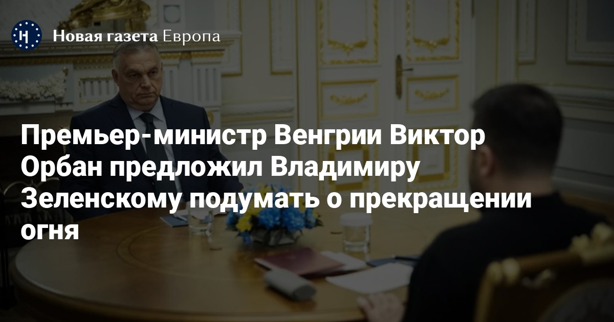 Премьер-министр Венгрии Виктор Орбан в ходе своего визита в Киев призвал президента Украины Владимира Зеленского подумать о прекращении огня, которое, по его словам, поможет ускорить переговоры с Россией. Об этом сообщил корреспондент «Европейской правды».