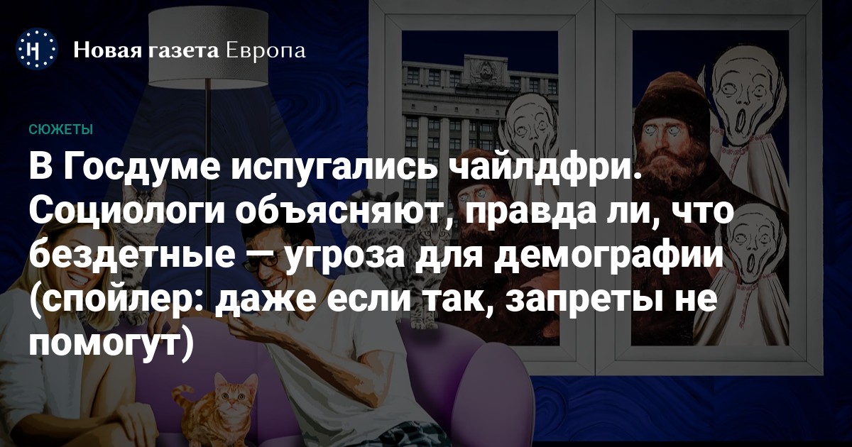 В Госдуме испугались чайлдфри. Социологи объясняют, правда ли, что бездетные — угроза для демографии (спойлер: даже если так, запреты не помогут)
