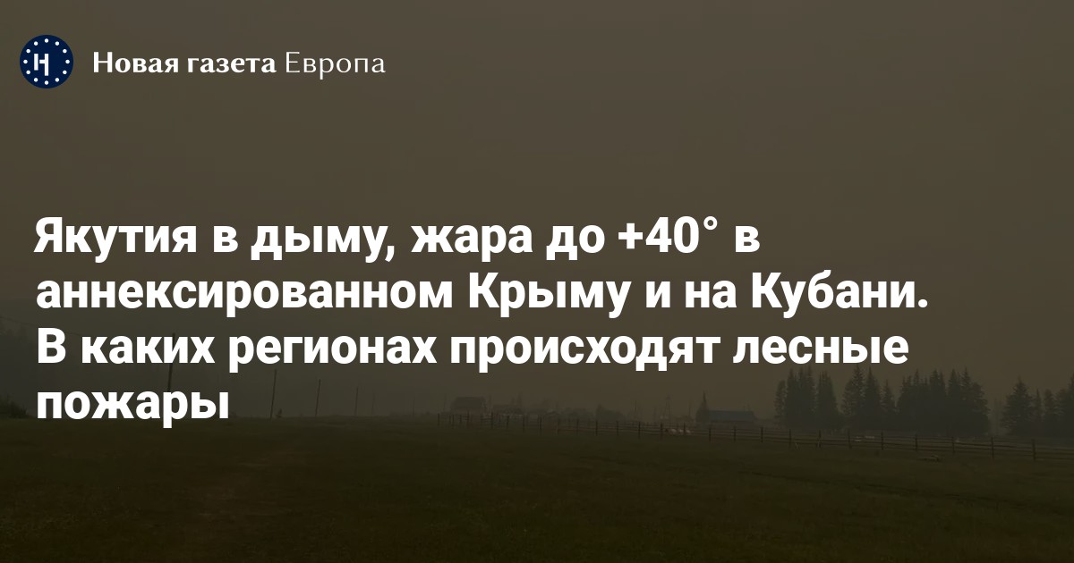 МЧС предупредил жителей Якутии о сильной задымленности из-за природных пожаров, площадь которых превысила 936 тысяч гектаров. В аннексированном Крыму больше 500 пожарных тушат пять очагов возгораний. Температура воздуха на полуострове может доходить до +40° градусов. Главное о природных пожарах в России — в материале «Новой газеты Европа».