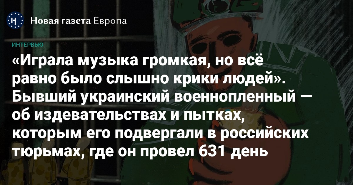 — Там играла музыка громкая, ну, пропагандистская музыка — «Любэ», «День Победы» и тому подобное, что они там любят, — и всё равно было слышно крики людей. И еще на нас собак натравливали. Мы выползали из камер — нас заставляли ползти. Потом мы лежали на полу, и собаки нас атаковали, кусали. Это были немецкие овчарки, бельгийские овчарки, хаски, разные собаки. Кусали нас до крови. Так было несколько раз. Еще ставили нас согнутыми буквой «Г», руки за спину. Или ноги раздвинуты сильно, чуть ли не на шпагат, и руки на стенку. Потом заставляли нас учить стихи, правила.