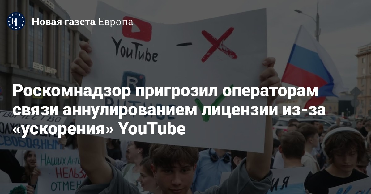 В посланиях Роскомнадзора говорится, что если операторы связи не прекратят внедрять технологии по «ускорению» YouTube, они могут быть привлечены к административной ответственности по статье о нарушении требований законодательства о централизованном управлении сетью связи общего пользования (ст. 13.45 КоАП РФ).