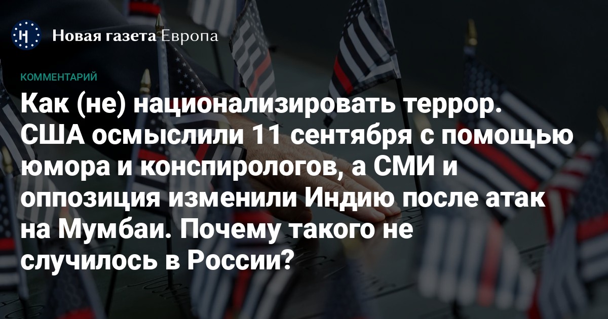 США осмыслили 11 сентября с помощью юмора и конспирологов, а СМИ и оппозиция изменили Индию после атак на Мумбаи. Почему такого не случилось в России?