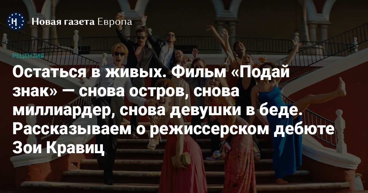 В мировом прокате — сатирический комедийный триллер «Подай знак» от дебютировавшей в качестве режиссера актрисы Зои Кравиц («Бэтмен», «Меломанка», «Большая маленькая ложь»). Действие происходит на изолированном острове, купленном раскаявшимся миллиардером. Десяток разных гостей — поровну мужчин и женщин — оказываются втянуты в его хитроумную игру на выживание. Кинокритик Катя Степная посмотрела очередной зрительский хит о пороках и власти богатых и констатирует, что он добавляет хорошо знакомому сюжету новый градус насилия и профеминистский твист.