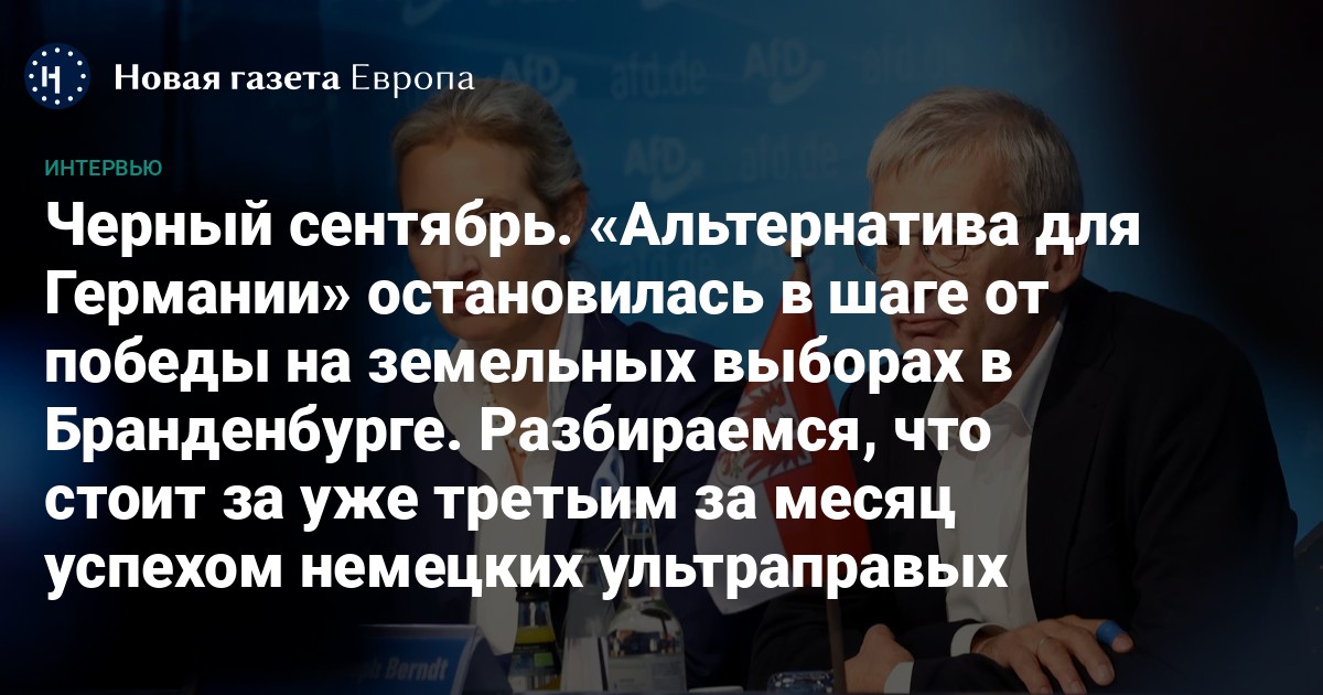 — Опросы предрекали «Альтернативе для Германии» (AfD) победу в Бранденбурге, а сторонники партии были как никогда мобилизованы и вдохновлены исторический победой в Тюрингии, где AfD набрала более 30%. Тем не менее, им не удалось вытеснить Социал-демократическую партию (СДПГ). Почему?