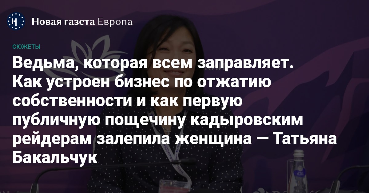 Но самое нелепое и унизительное в этой ситуации то, что первую публичную пощечину кадыровским рейдерам залепила женщина — Татьяна Бакальчук.
