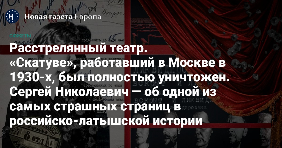 «Третьим Отделом УГБ УНКВД МО была вскрыта и ликвидирована латышская контр-революционная (к. р.) националистическая фашистская ячейка, созданная в 1934–35 гг. из артистов латышского театра “Скатуве”… Актеры проводили среди латышей к. р. работу и фашистскую националистическую агитацию… Приговор: расстрел».