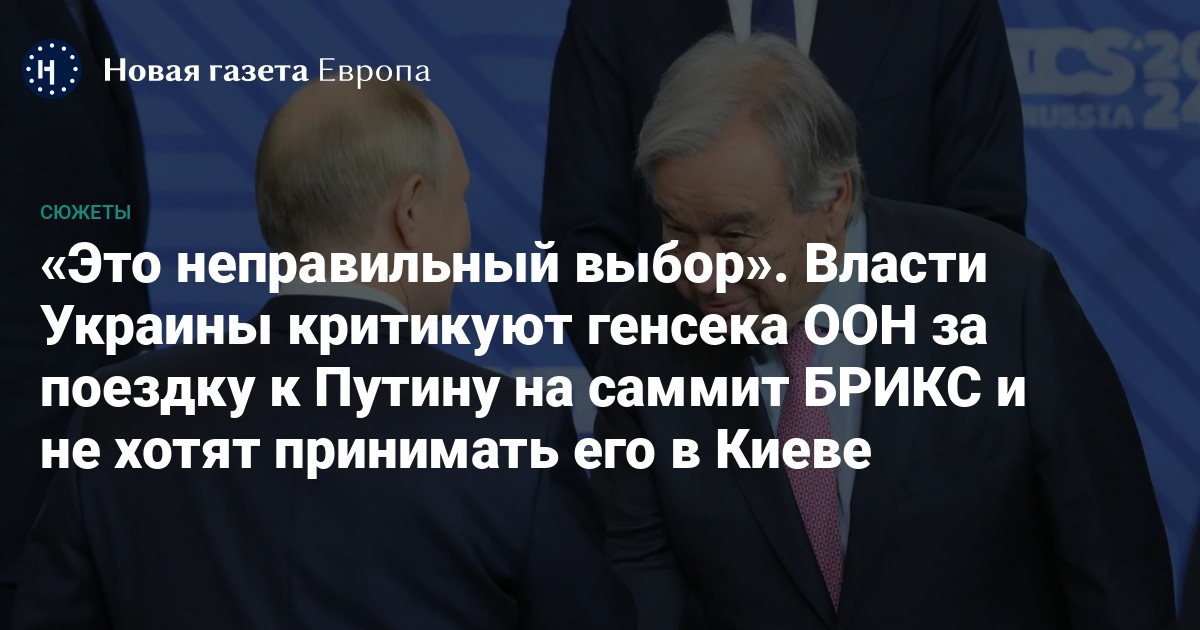 Генеральный секретарь ООН Антониу Гутерриш столкнулся с критикой после того, как принял участие в саммите БРИКС в Казани. Украинские власти упрекнули его в том, что его действия подрывают репутацию ООН и не способствуют установлению мира. Мнение Киева поддержали в Вильнюсе и Таллинне. Подробнее о визите Гутерриша в Россию и реакции на него — в материале «Новой-Европа».
