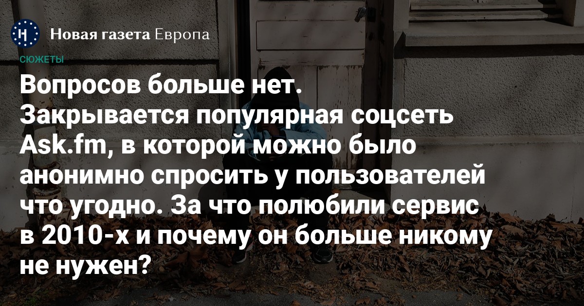 Еще десять лет назад представить такой исход было сложно: Ask.fm был одним из самых популярных и обсуждаемых сервисов в мире с десятками миллионов пользователей. «Новая-Европа» рассказывает о взлете и падении соцсети, без которой сложно представить интернет 2010-х.