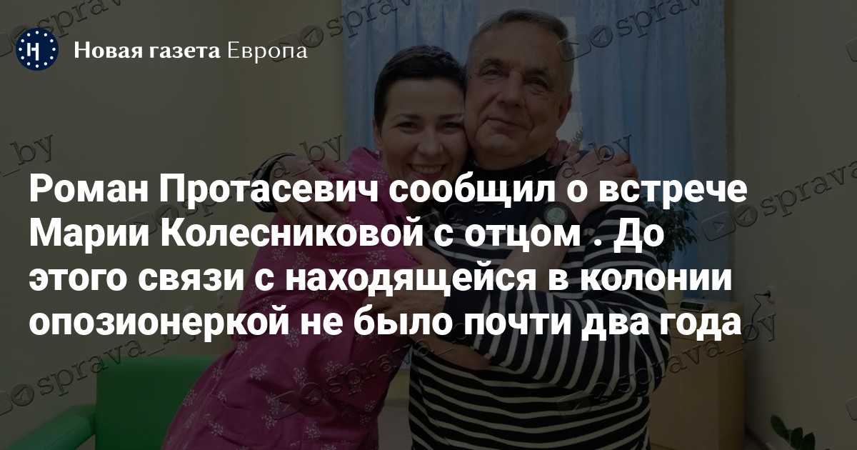 Одна из лидерок белорусского протеста Мария Колесникова встретилась со своим отцом. Фото выложил в своем телеграм-канале блогер Роман Протасевич, написав, что встреча произошла сегодня.