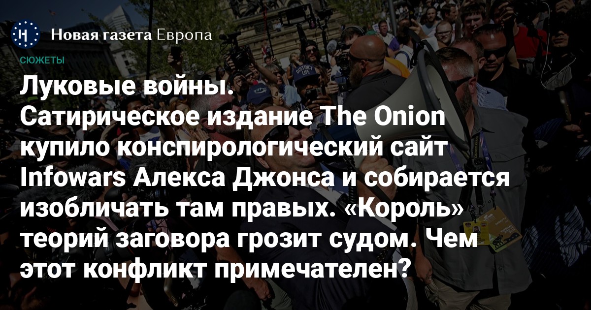 14 ноября американские СМИ сообщили неожиданную новость: сатирический сайт The Onion выиграл аукцион по покупке обанкротившегося правого издания Infowars, распространявшего фейки и конспирологические теории. Новый владелец собирается перезапустить ресурс в январе и сделать его пародией на ультраправые медиа.