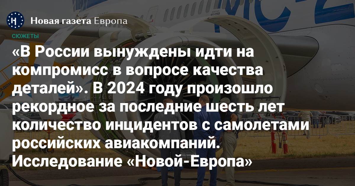В 2024 году произошло рекордное за последние шесть лет количество инцидентов с самолетами российских авиакомпаний. Исследование «Новой-Европа»