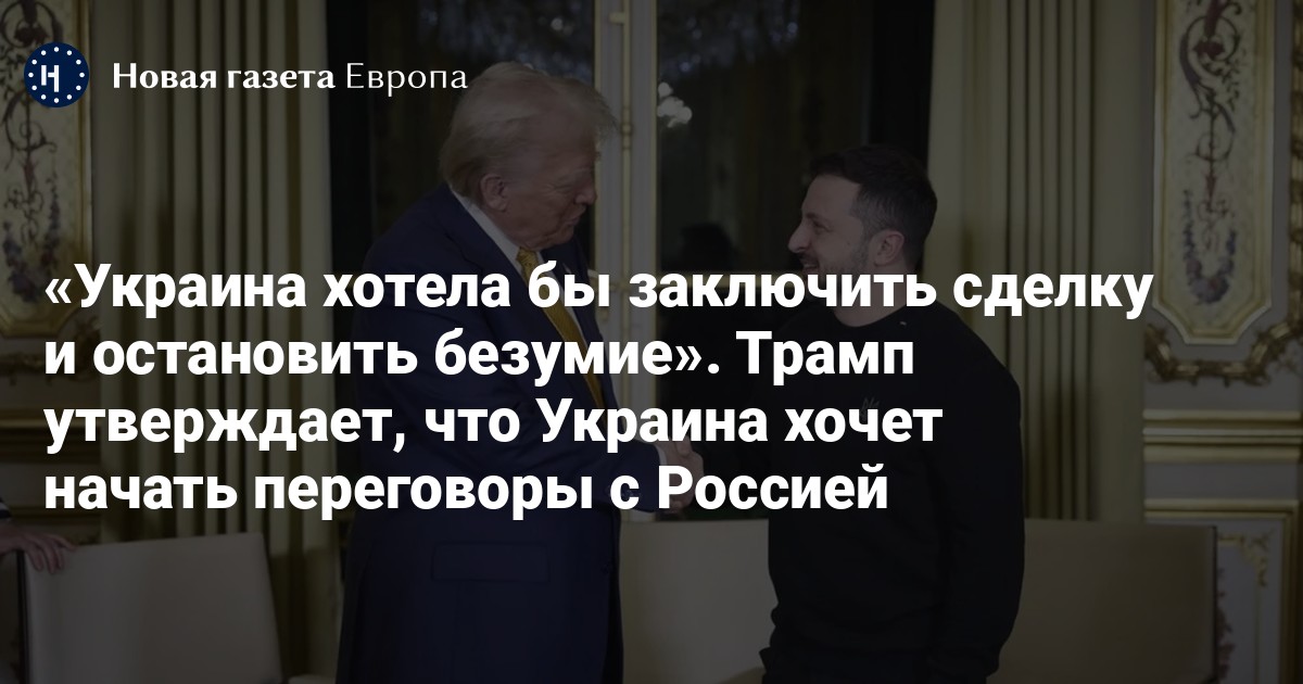 «Украина хотела бы заключить сделку и остановить безумие». Трамп утверждает, что Украина хочет начать переговоры с Россией