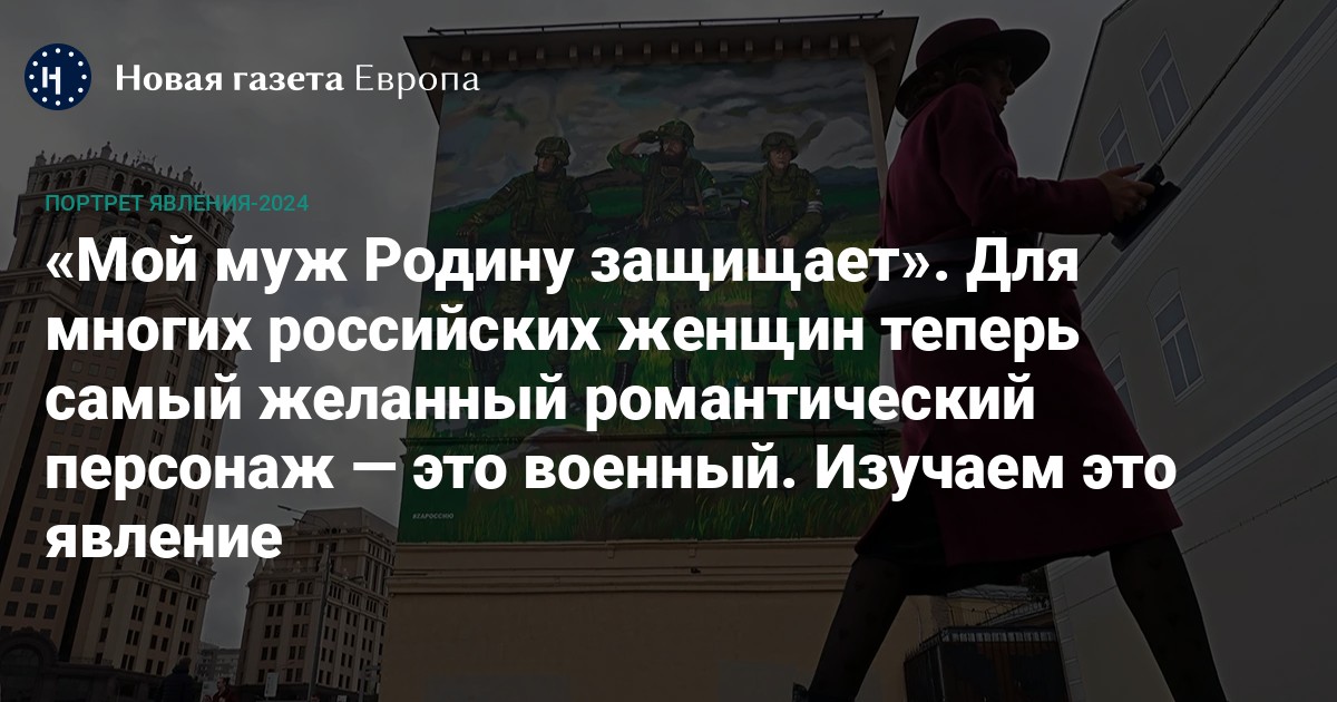 Война привнесла ряд изменений в жизнь россиян, и сфера романтических отношений не осталась в стороне. Образ военного всё чаще возникает как пример идеального жениха, а некоторые женщины даже готовы заключать брак с военнослужащим онлайн, без личной встречи. О том, как выглядят разные проявления романтизации военных и что это говорит об обществе, — в материале «Новой газеты Европа».