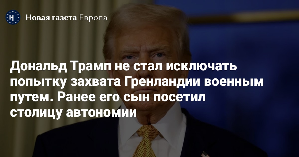 Дональд Трамп не стал исключать попытку захвата Гренландии военным путем. Ранее его сын посетил столицу автономии