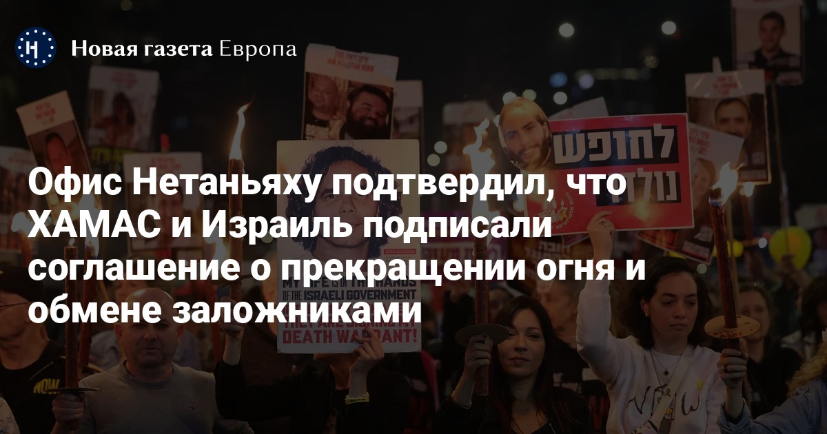 Канцелярия премьер-министра Израиля Биньямина Нетаньяху подтвердила, что переговорные группы Израиля и группировки ХАМАС подписали в Дохе соглашение о прекращении огня и освобождении заложников.