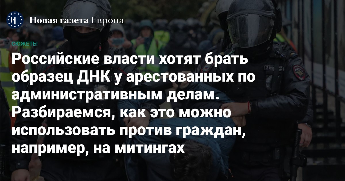 С 1 января 2025 года список стал еще обширнее. Отныне процедура обязательной геномной регистрации применяется также для лиц, подвергнутых административному аресту, — то есть за административные правонарушения, которые регламентируются соответствующим кодексом (КоАП)