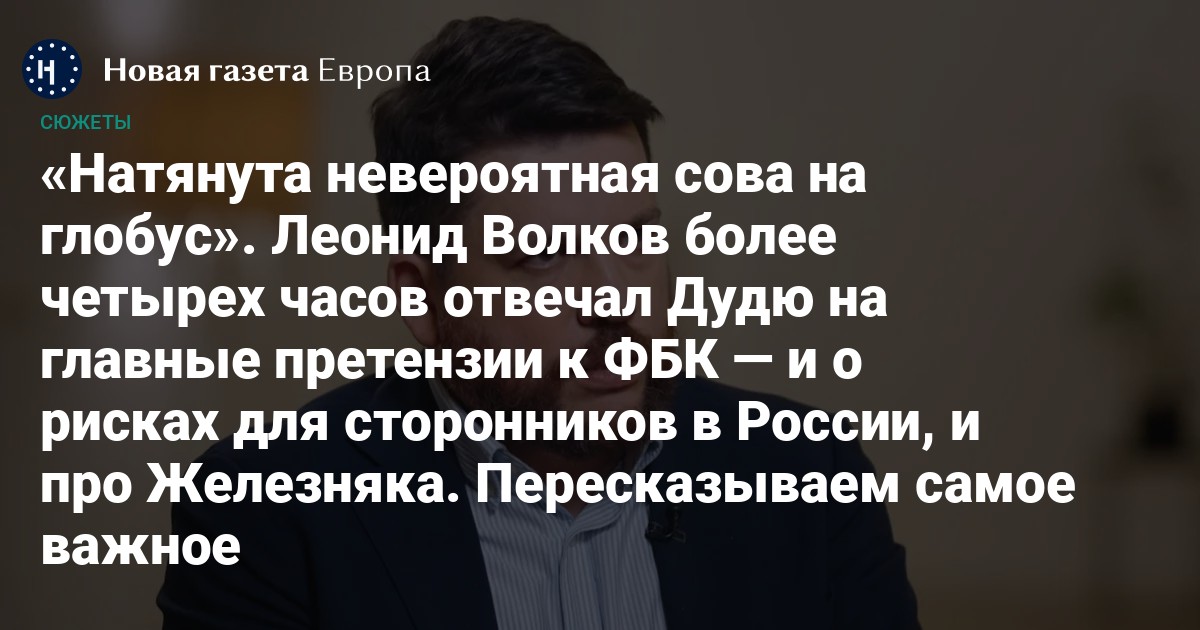 Один из лидеров Фонда борьбы с коррупцией Леонид Волков дал интервью Юрию Дудю. Разговор длится 4,5 часа: большую часть выпуска политик отвечает на основные претензии, которые предъявляли за последние годы и к нему лично, и к созданному Алексеем Навальным фонду, который многие называют главной политической силой антивоенной оппозиции. «Новая газета Европа» посмотрела интервью и, насколько это возможно, коротко пересказывает, как Волков объясняет контекст скандала с банкирами Железняком и Леонтьевым, публичных спорах между оппозиционными фигурами, рисках для сторонников в России и не только.