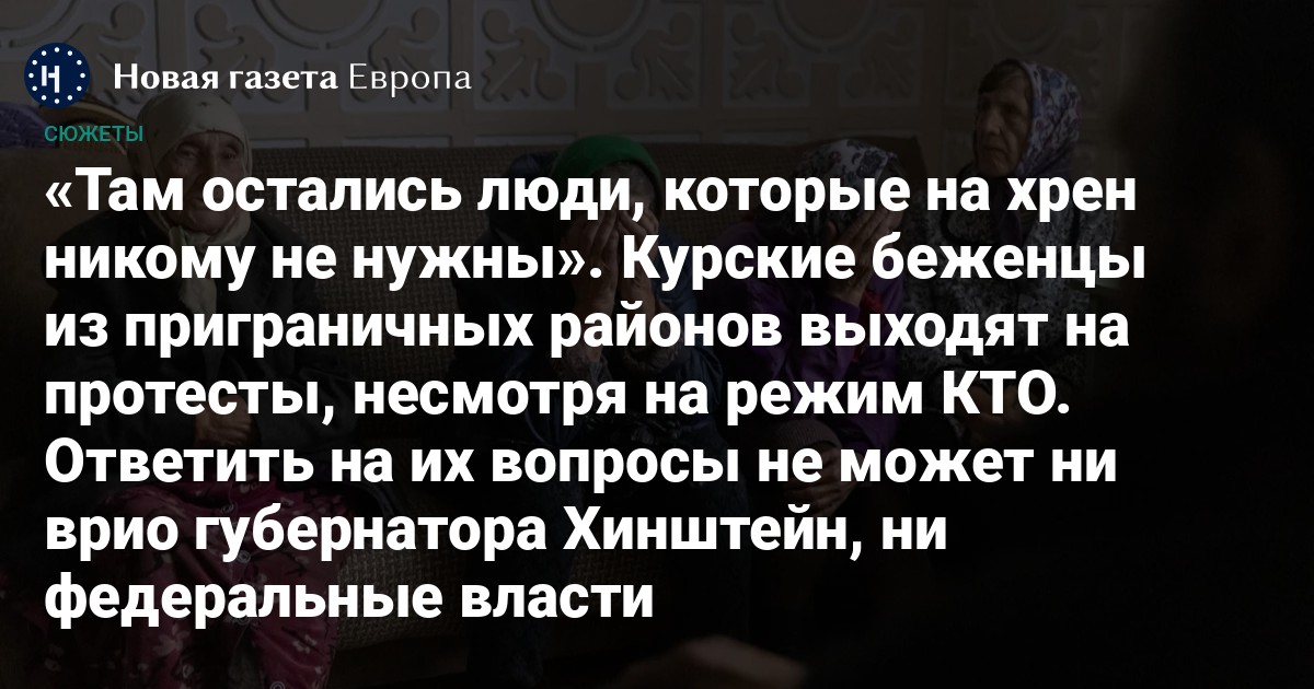 Курские беженцы из приграничных районов выходят на протесты, несмотря на режим КТО. Ответить на их вопросы не может ни врио губернатора Хинштейн, ни федеральные власти