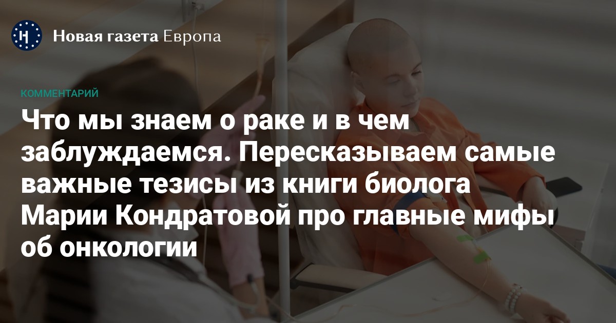 Мало какая болезнь окружена таким количеством мифов, конспирологических теорий и заблуждений, как рак. Одни возникли, когда об онкологии было еще очень мало известно, другие продиктованы страхом перед болезнью. В своей книге «Кривое зеркало жизни. Главные мифы о раке и что современная наука думает о них» молекулярный биолог Мария Кондратова, работающая в парижском Институте Кюри, подробно исследует самые расхожие стереотипы о раке, объясняет их природу и последовательно их развенчивает. Пересказываем главное.