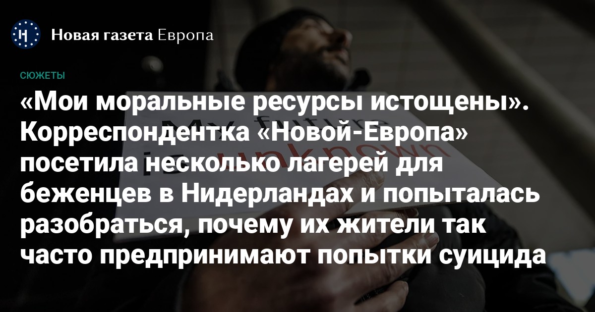 Корреспондентка «Новой-Европа» отправилась в Нидерланды, чтобы посмотреть изнутри, как устроены лагеря для беженцев, и пообщаться с одной из самых уязвимых категорий их жителей — квир-людьми. Среди тех, с кем удалось поговорить журналистке «Новой-Европа», несколько человек тоже пытались свести счеты с жизнью, они рассказали, что толкнуло их на этот шаг.