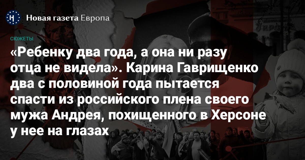 Согласно последнему отчету Комитета по миграции, беженцам и перемещенным лица ПАСЕ, пропавшими без вести и попавшими в плен числятся почти 66 тысяч украинцев. И каждый из этих десятков тысяч — это такая же драма, как в жизни Карины Гаврищенко и Андрея Торицы. 66 тысяч семей разыскивают своих близких и ждут их возвращения. Когда-нибудь об этом будут писать книги. Мне бы очень хотелось, чтобы будущие авторы этих книг не забыли историю Карины — отчаянной херсонской девчонки, бьющей по машине агрессора посреди оккупированного города, рожающей под обстрелами, стоящей в пикете с портретом мужа, ищущей, ждущей, надеющейся.