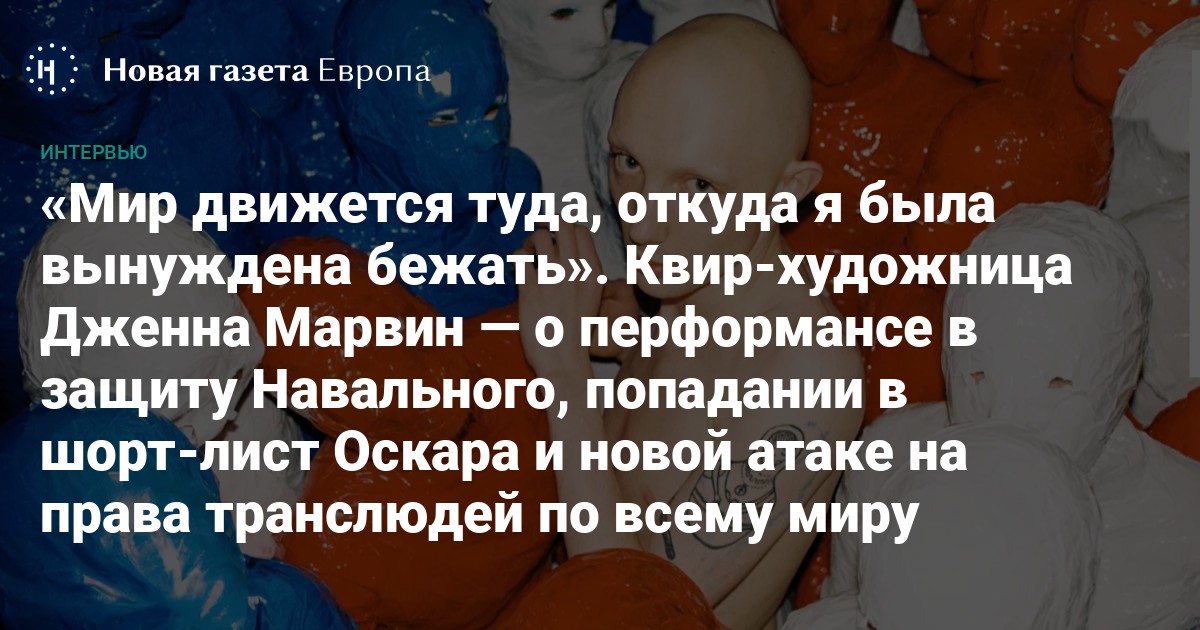 Квир-художница Дженна Марвин — о перформансе в защиту Навального, попадании в шорт-лист Оскара и новой атаке на права транслюдей по всему миру
