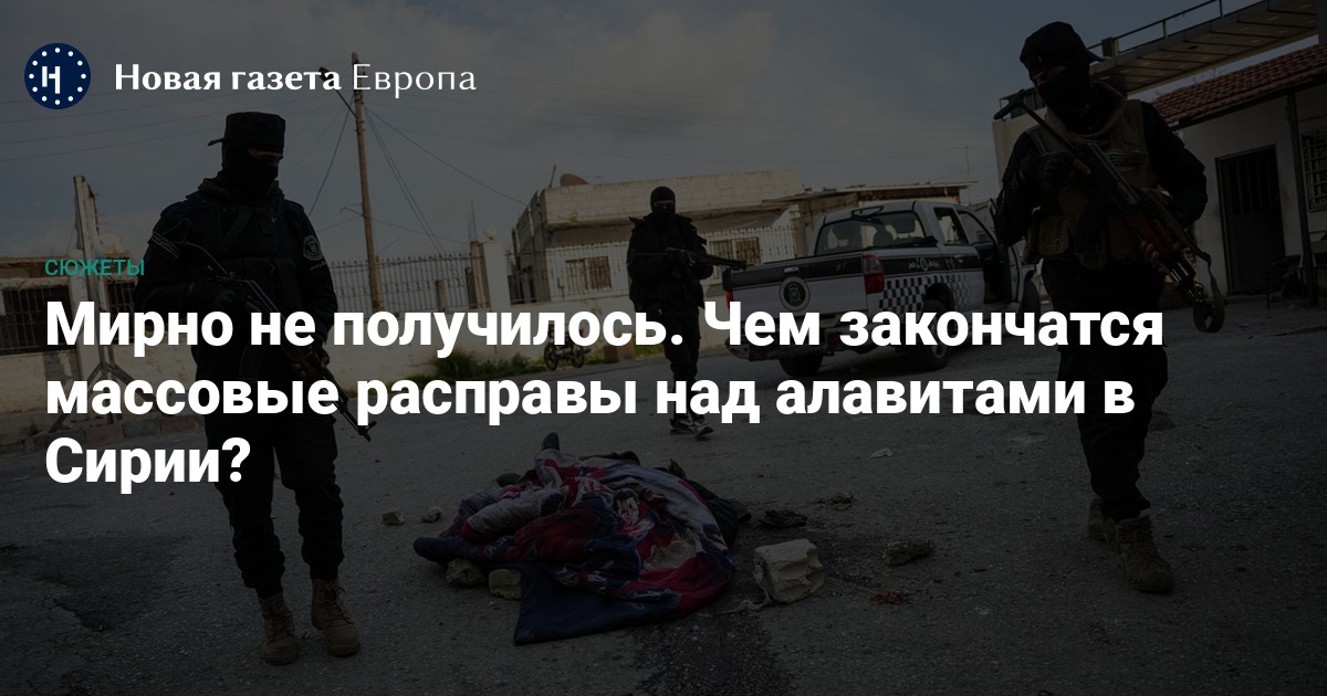 В Сирии разгорается новая гражданская война. Пришедшие к власти в результате свержения бывшего президента Башара Асада радикальные исламисты-сунниты начали сводить счеты с жителями приморских областей (мухафаз) Латакия и Тартус. Эти регионы на западе Сирии населены преимущественно алавитами — сравнительно немногочисленной этнорелигиозной группой, находившейся в основе асадовского режима. Всего алавиты составляют примерно 10 процентов от общего числа сирийцев.