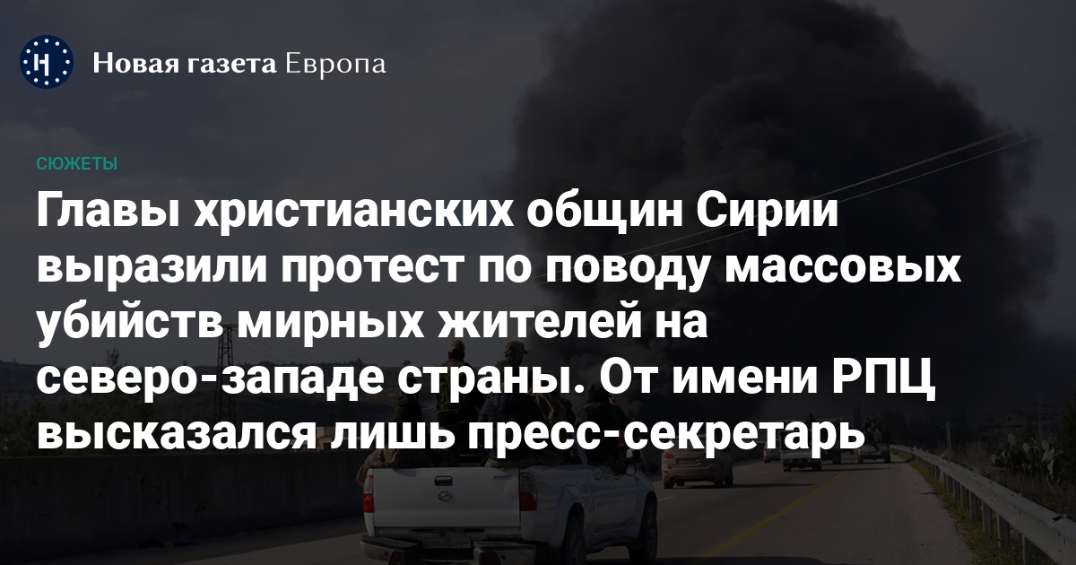 Главы христианских общин Сирии выразили протест по поводу массовых убийств мирных жителей на северо-западе страны. От имени РПЦ высказался лишь пресс-секретарь