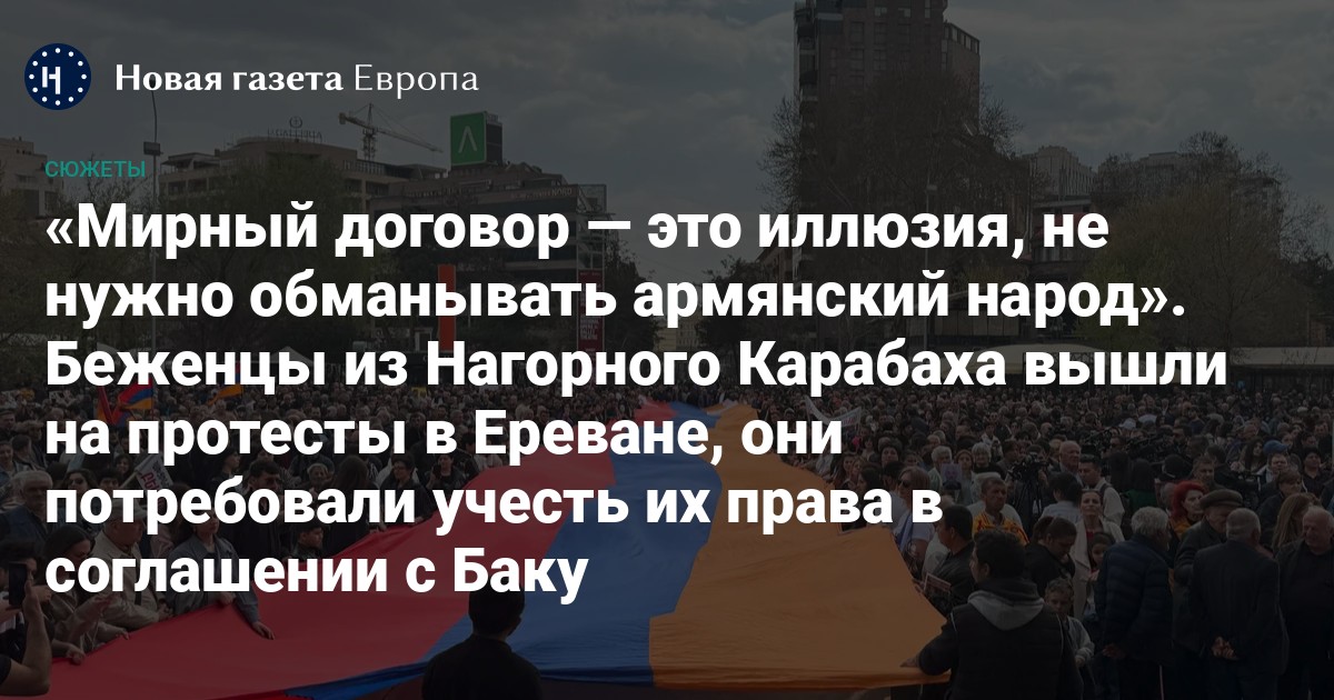 Участники митинга были недовольны и тем, что в мирном договоре не отражен вопрос армянских жителей Нагорного Карабаха. Бывший госминистр Артак Бегларян считает, что мир «за счет крови и попранных прав» не будет устойчивым.