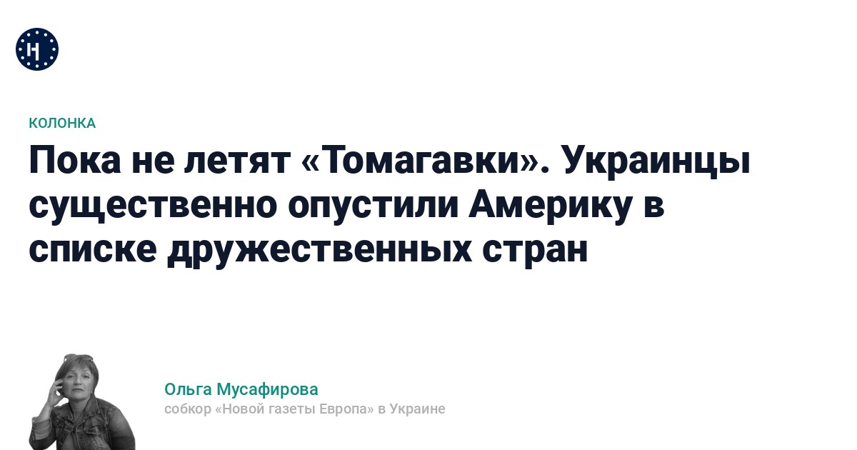 В январе 2025 года социологическая группа «Рейтинг» в рамках глобального ежегодного опроса института Гэллапа заключила: Украина — среди наибольших оптимистов относительно роли США в мире. 51 процент украинцев назвали влияние внешней политики Штатов положительным. А уже в марте социологи исследовательской компании Gradus Research показали: Америка не входит в топ-пять дружественных Украине стран. Максимум симпатий получила Великобритания, а США спустились во вторую часть списка и заняли место между Румынией и Венгрией.