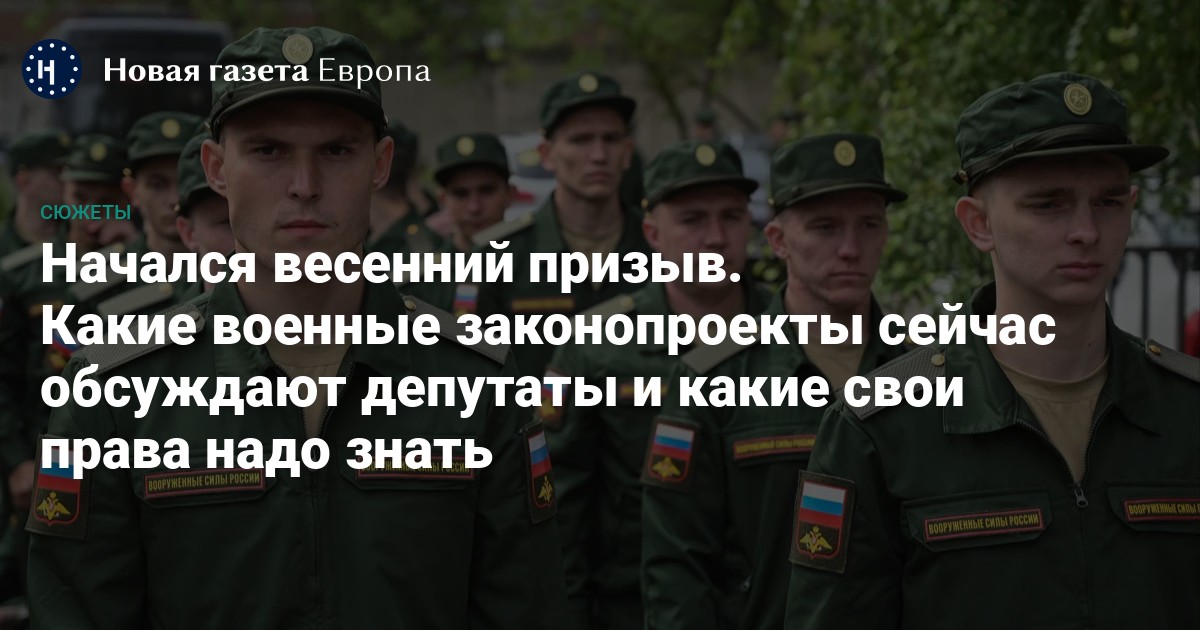 Какие изменения в законах и практике призыва сейчас обсуждают в Госдуме? Вступят ли они в силу уже в этот призыв? Как защитить свои права и избежать нарушений — напоминает «Новая-Европа».