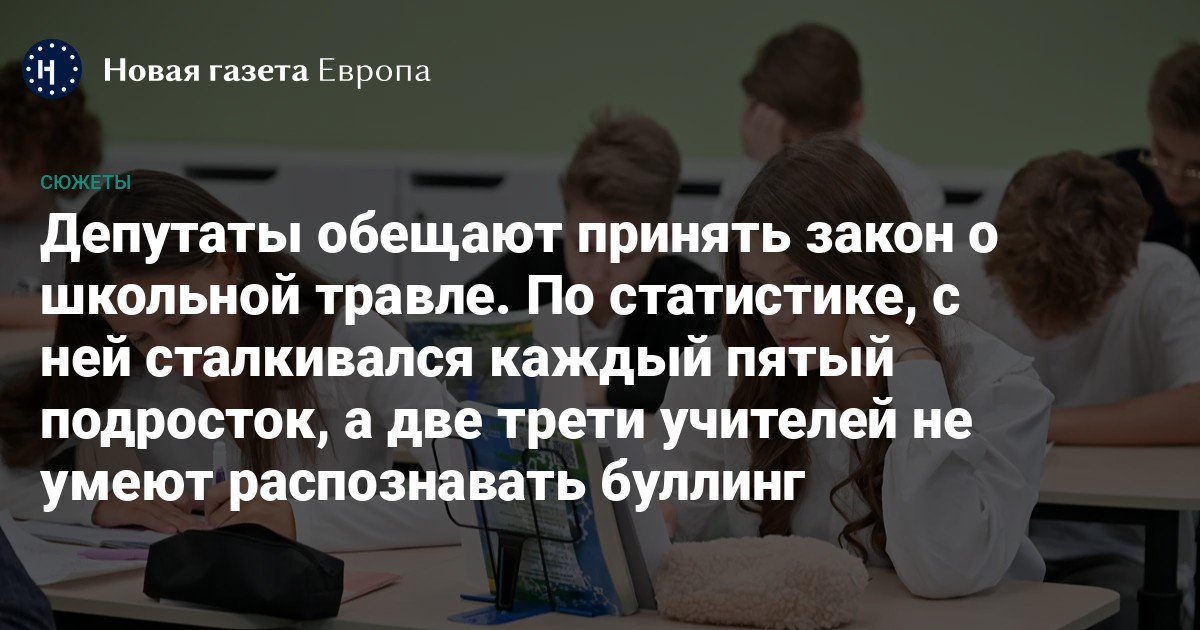 Депутаты обещают принять закон о школьной травле. По статистике, с ней сталкивался каждый пятый подросток, а две трети учителей не умеют распознавать буллинг