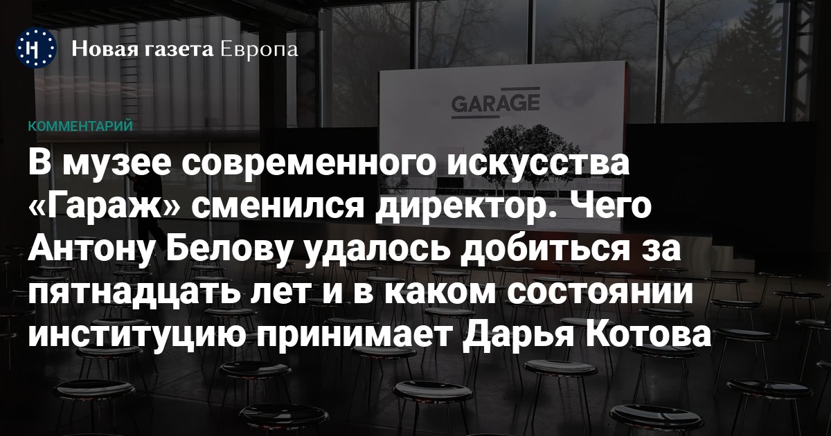 17 апреля московский музей современного искусства «Гараж», принадлежащий Роману Абрамовичу и Дарье Жуковой, объявил о смене директора. Свой пост покинул арт-менеджер Антон Белов, руководивший институцией с 2010 года. «Гараж» возглавила Дарья Котова, работающая в нем уже больше 15 лет. Замены музейных директоров в последние годы привлекают внимание и, как правило, пугают. Изменения в «Гараже» отличаются и скорее свидетельствуют о подводных течениях в музее.