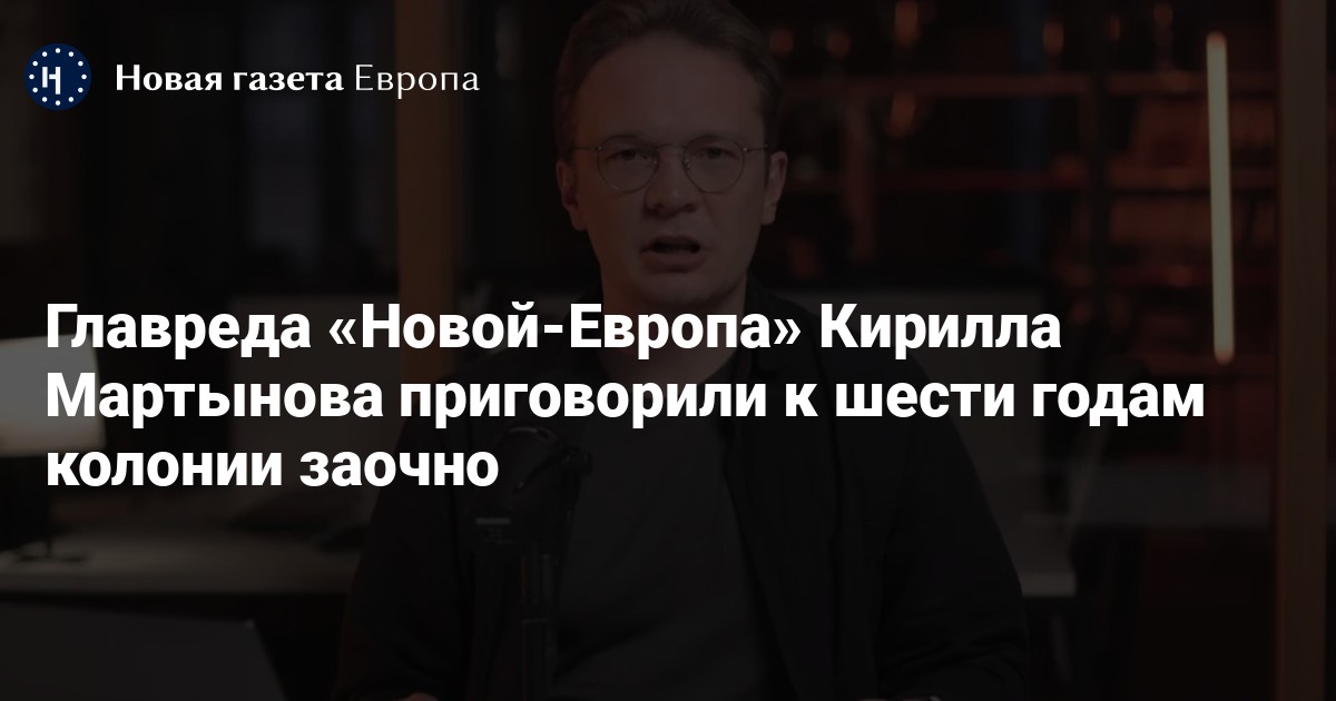 Басманный районный суд Москвы приговорил главного редактора «Новой газеты Европа» Кирилла Мартынова к шести годам колонии заочно по делу об организации деятельности «нежелательной» организации (ст. 284.1 УК).