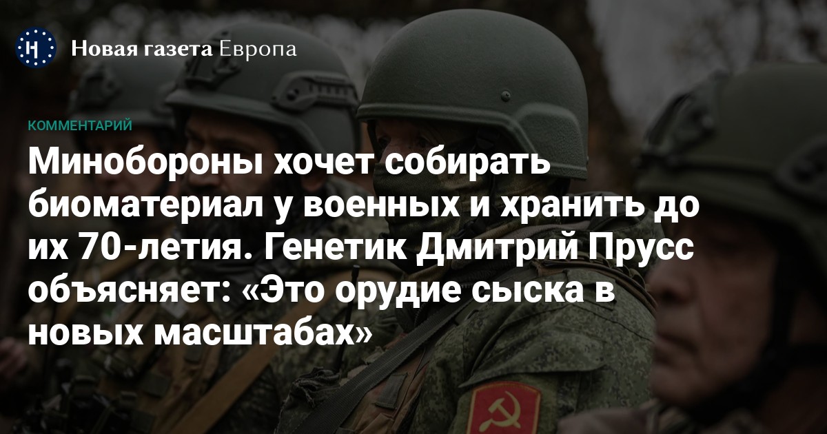 «Формально вопрос о сборе ДНК военнослужащих стоит в связи с трудностями идентификации останков, особенно провалявшихся без морга месяцами и годами и разложившихся до неузнаваемости. ДНК помогает идентификации костей», — объясняет «Новой газете Европа» генетик Дмитрий Прусс.