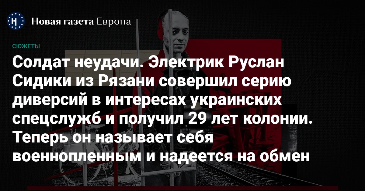 Электрик Руслан Сидики из Рязани совершил серию диверсий в интересах украинских спецслужб и получил 29 лет колонии. Теперь он называет себя военнопленным и надеется на обмен