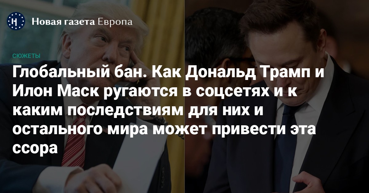 О том, какими последствиями конфликт Трампа и Маска может обернуться для обеих сторон, — в материале «Новой-Европа».