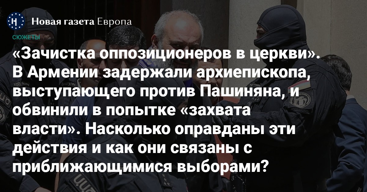В Армении задержали архиепископа, выступающего против Пашиняна, и обвинили в попытке «захвата власти». Насколько оправданы эти действия и как они связаны с приближающимися выборами?