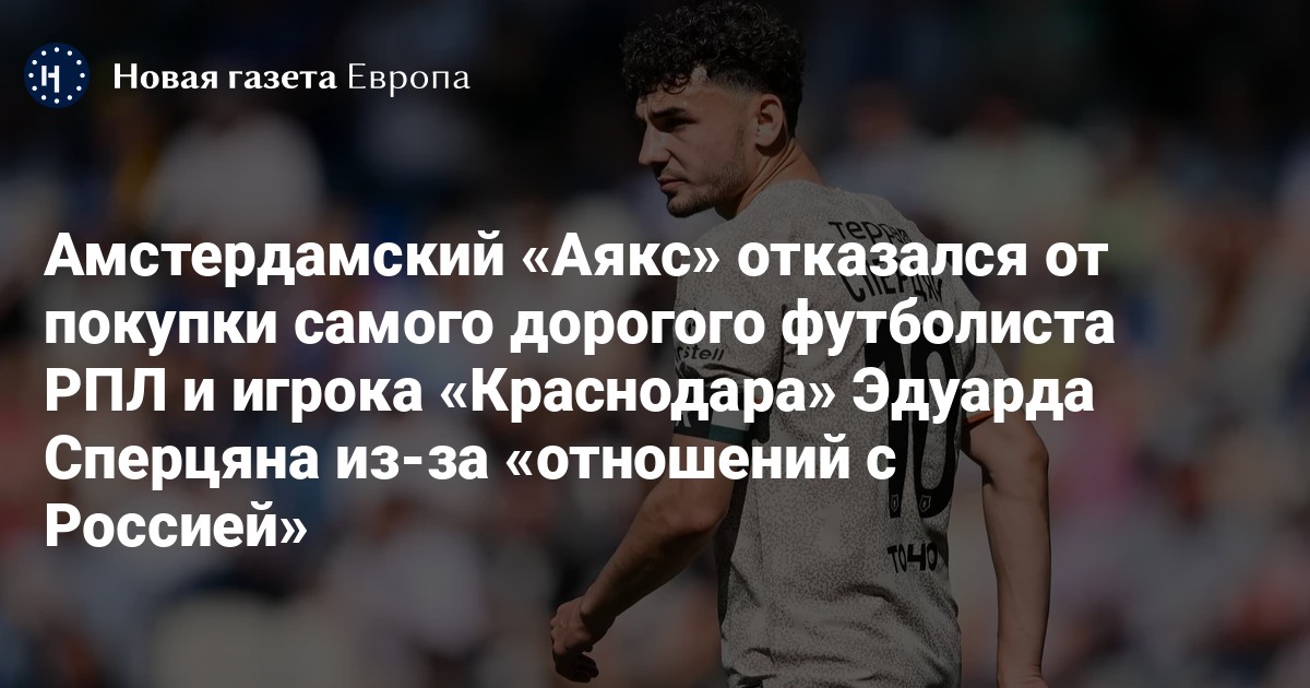 Амстердамский «Аякс» отказался от покупки самого дорогого футболиста РПЛ и игрока «Краснодара» Эдуарда Сперцяна из-за «отношений с Россией»