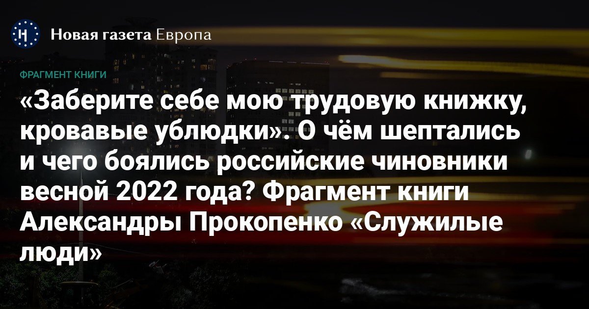О чём шептались и чего боялись российские чиновники весной 2022 года? Фрагмент книги Александры Прокопенко «Служилые люди»