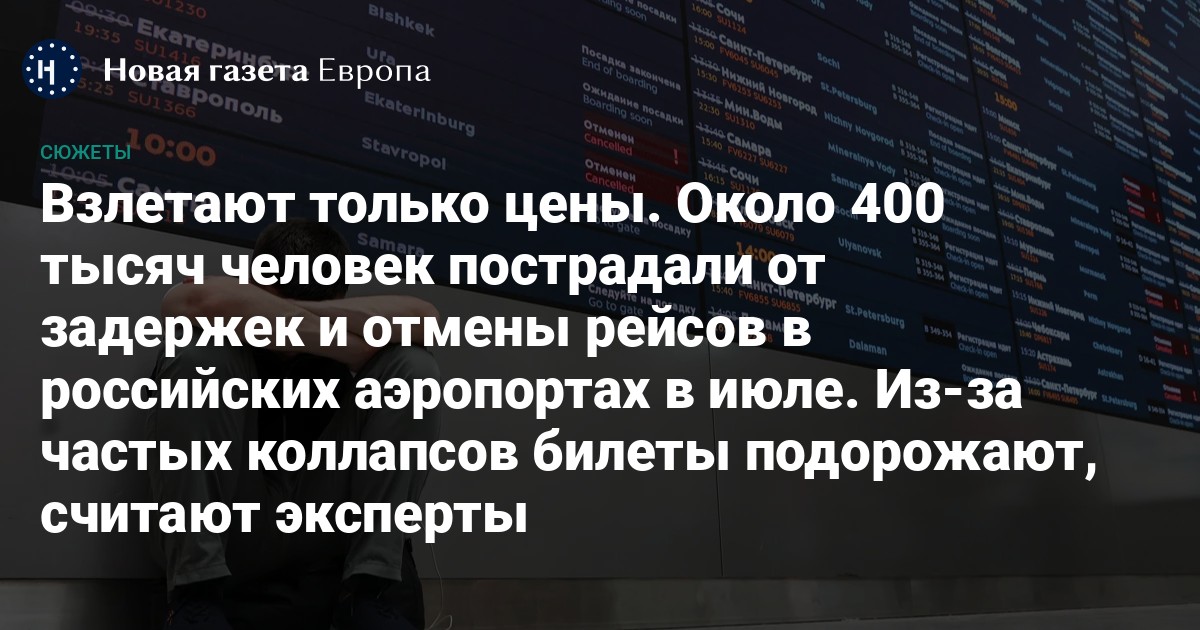 Около 400 тысяч человек пострадали от задержек и отмены рейсов в российских аэропортах в июле. Из-за частых коллапсов билеты подорожают, считают эксперты