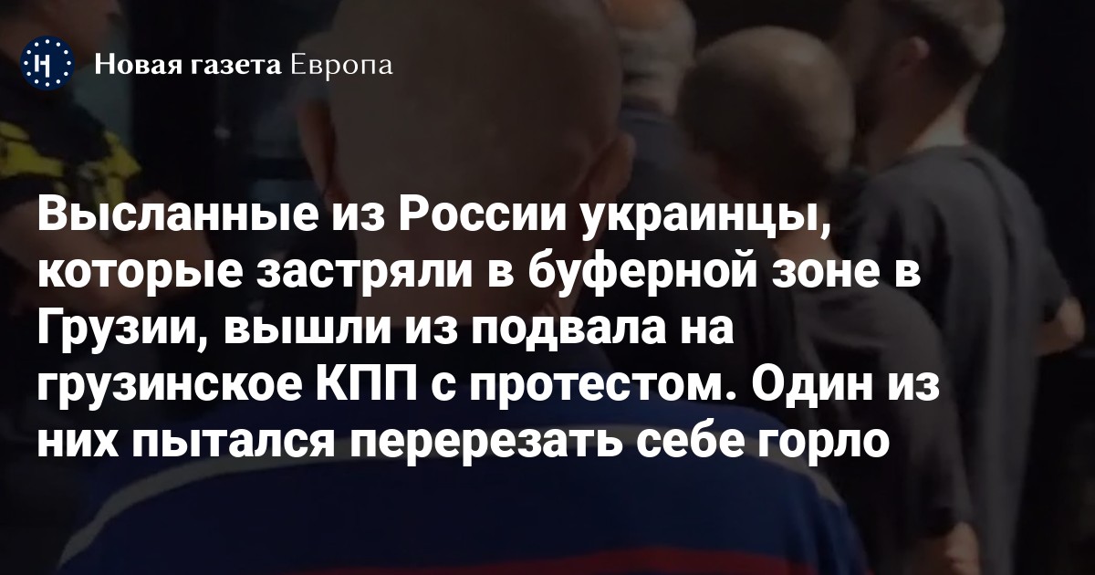 Высланные из России украинцы, которые застряли в буферной зоне в Грузии, вышли из подвала на грузинское КПП с протестом. Один из них пытался перерезать себе горло