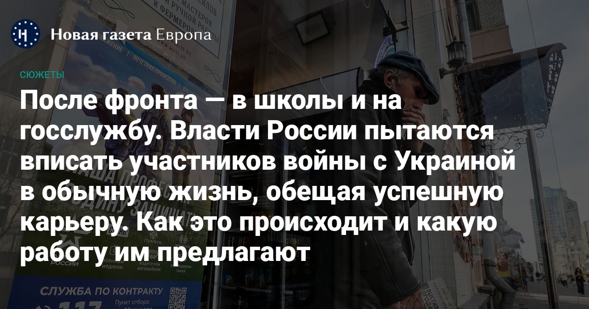 С начала полномасштабной войны в Россию вернулись более 137 тысяч участников «СВО». Молодые, трудоспособные, часто без мирной профессии, они становятся чиновниками, учителями, охранниками, водителями. Путин называет их «подлинной элитой» и организует нацпроекты и госфонды по их переобучению и трудоустройству: «Кадры», «Время героев», «Защитники отечества».